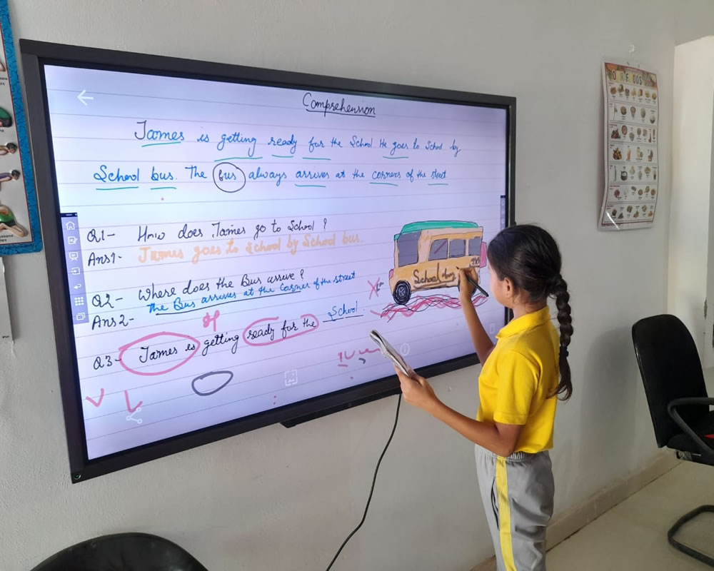 PM SHRI Government Primary School, Devprayag, is proud to offer a Smart Classroom to make learning more engaging and interactive for students. Equipped with a digital board, projector, and audio system, the smart classroom helps teachers use videos, animations, and educational software to explain lessons in a fun and clear way.